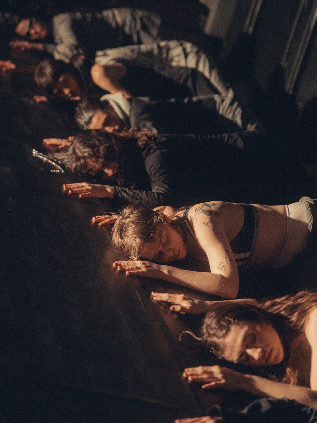 “D E F A U L T M O D E N E T W O R K” is a space where you can wander around. Ten performers diving into their internal tasks. Images emerge from a dreamlike dramaturgy. Giving space and time for things to happen and for images to appear. An illogical narrative is leading us through this journey. Our attention swings between the external and the within. “D E F A U L T M O D E N E T W O R K” invites us to walk the thin line between fiction and reality and plays with the border of focus and absentmindedness.